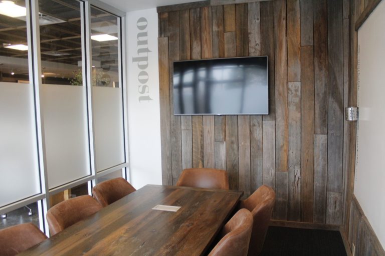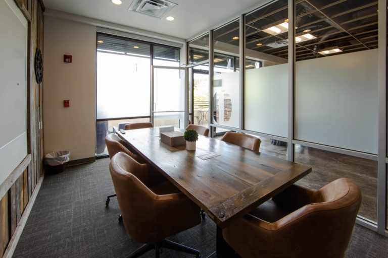 Industrial metals paired with rustic wood accents create a unique meeting environment perfect for client meetings and strategy sessions. Wood walls, plush chairs and windows will keep your team comfortable, motivated and engaged.